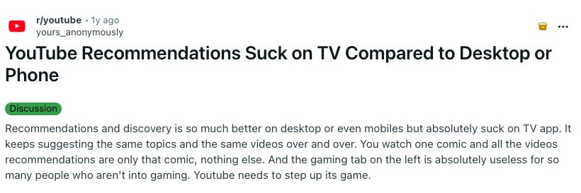 Right now, it feels like everything is heavily biased toward personalization, at the expense of discovery.
